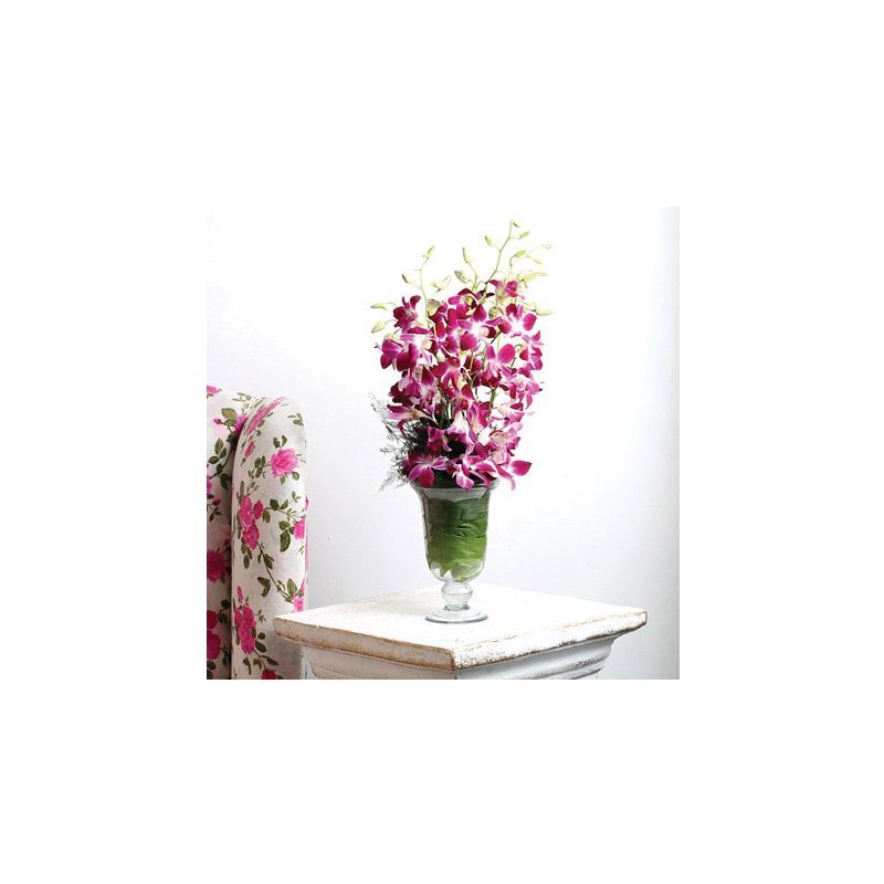 - Glass vase arrangement of 10 Purple Orchids (Height 6 Inches)